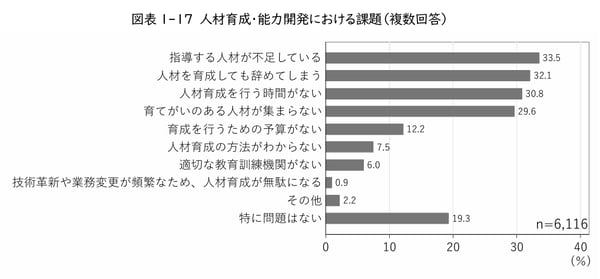 既存の従業員に教育と通常業務を両立させるほかなく、結果、多くの企業が指導者不足に悩まされているというわけです。