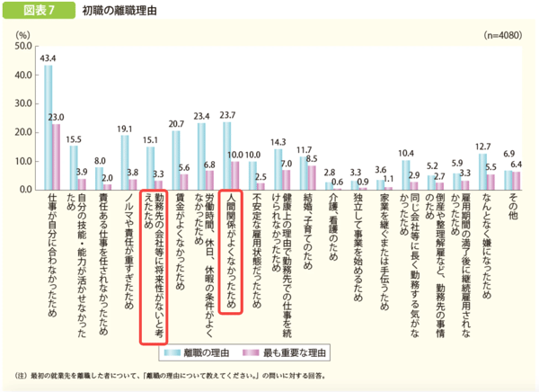 厚生労働省による調査では、2021年度の入社後3年以内の離職率(大卒)は34.9%と、約3人に1人が早期離職をしていることになります。この数字は決して今に始まったものではありませんが、現代の少子高齢化を絡めて考えると、その数字は年々深刻なものになっていると捉えざるを得ないでしょう。
