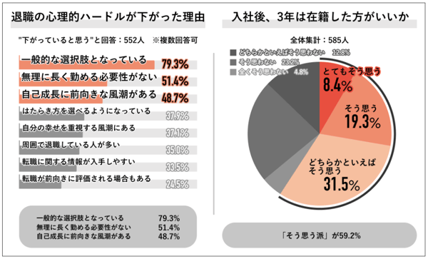転職や独立へのハードルが低くなった今、多くの企業が離職者の増加に悩まされています。調査機関「Job総研」が行った調査で「入社後、3年は在籍した方が良い」と回答した人は、全体の約6割にとどまりました。